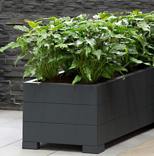 Deze modulaire bloembak is uitgevoerd in poedercoat antraciet. De bloembak is 42 cm hoog (3 panelen van 14 cm hoog) en is verkrijgbaar in verschillende lengte- en breedtematen. Wordt standaard geleverd zonder bodemplaat en pootjes. Deze zijn optioneel verkrijgbaar.