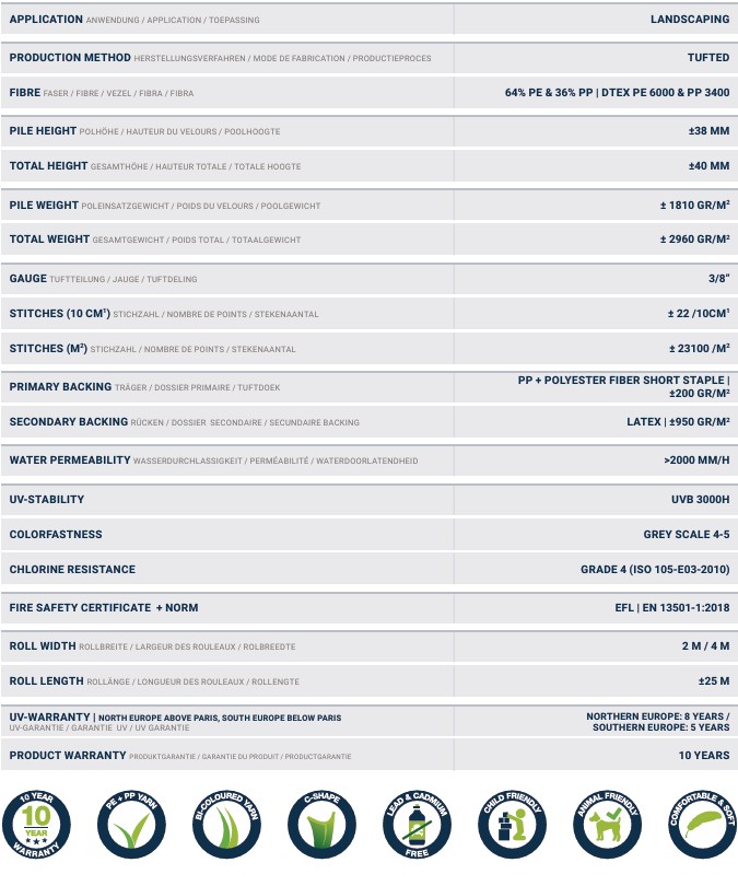 | Soort | AVE Paesaggio C38 Kunstgras |