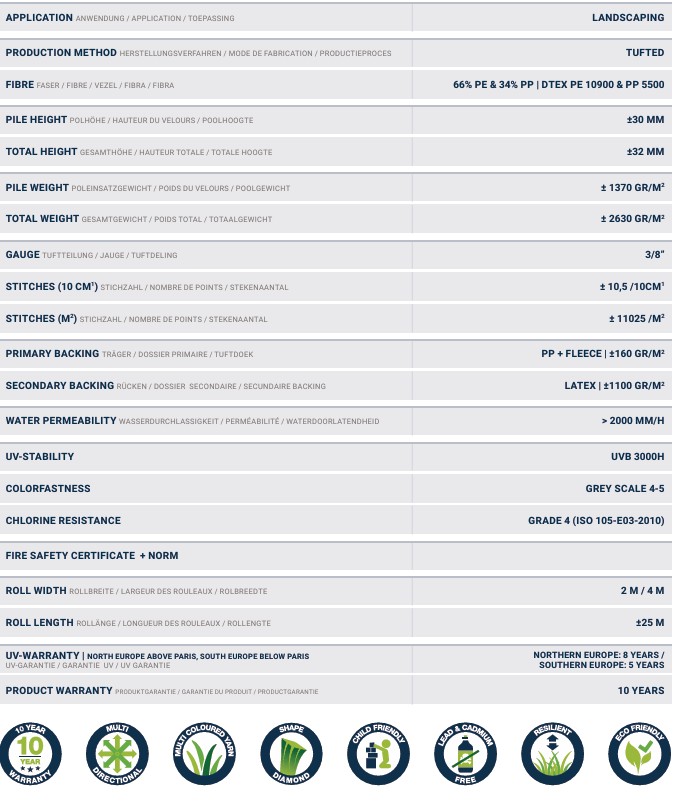 | Soort | AVE Paesaggio M30 Kunstgras |