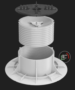 Dit is de versie met een zelf nivellerende kop. De rode schuif die ertussen geplaatst moet worden, zorgt ervoor dat afschot tot 5% opgevangen kan worden. Uiteraard kan de gehele tegeldrager ook via een verstelbare schroef, tot op de millimeter nauwkeurig aangepast kan worden. Dit gaat heel gemakkelijk middels een sleutel, die u door de voeg heen kan steken en door te draaien de juiste hoogte kan kiezen. Het is dus niet nodig om de tegels weer van de tegeldragers te halen, een aanpassing te doen de keramische tegel terug te leggen om te kijken of de aanpassing juist is. Dit is een groot voordeel van de Queen tegeldrager ten opzichte van de concurrentie!