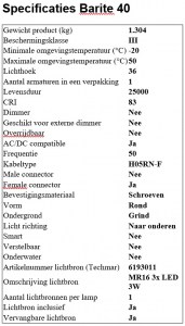 | Type verlichting / Materiaal | Barite 40 112P Aluminium - Zwart |